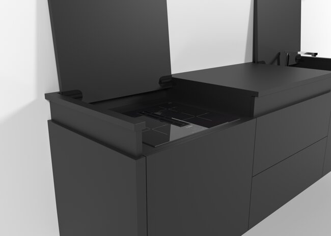 Cucina a scomparsa caratterizzata dal suo coperchio lineare, la collezione LINE propone una cucina a scomparsa dal profilo essenziale e raffinato grazie al suo coperchio superiore. Perfetta per integrarsi in ambienti moderni, combina design pulito e massima funzionalità, offrendo compattezza con un’estetica più orizzontale ed elegante. Disponibile nelle versioni a terra o sospesa, è il modello che ha dato origine al concetto Monolitika.